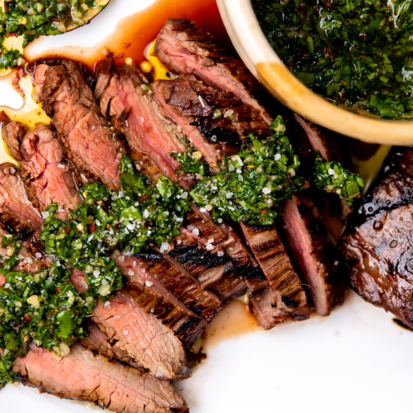 Balsamic Grilled Flank Steak with Chimichurri Sauce