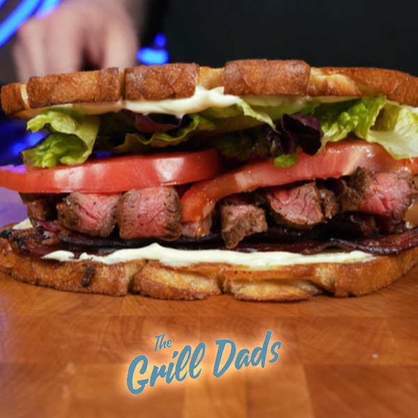 5) Slice the flat iron across the grain into thin strips. Build the sandwiches by swiping each piece of bread with mayo and then stacking the sandwiches with slices of steak, bacon, tomatoes, and lettuce. Top with another bread side and cut in half to make it easier to fit into your mouth.