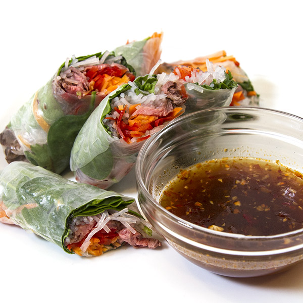 Put the Sweet & Spicy Dipping Sauce (recipe follows) into individual bowls and serve. (These rolls are best served soon after they are assembled.)