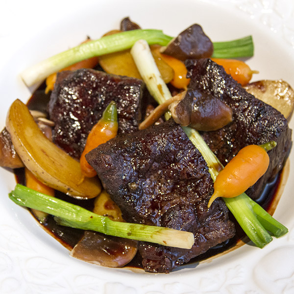 This is such a classic dish with so many variations that help to personalize it. Essentially, the dish requires a good braising meat like boneless short ribs or beef cheek, which is marinated in Pinot Noir for 48 hours before braising. Treating the stock properly is the key to this preparation. The stock must be carefully skimmed and strained frequently to lend a creamy texture to the finished sauce. Although red Burgundy is recommended, any sturdy Pinot Noir will do.