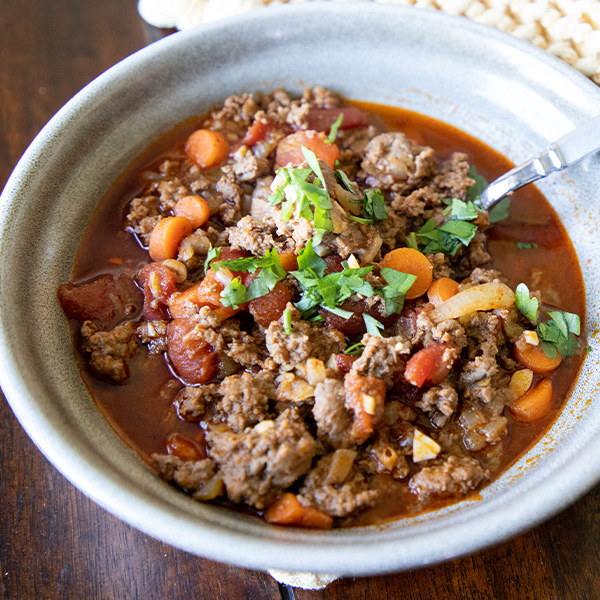 3. Next, add ground meat, cumin, chipotle chili powder and smoked paprika.