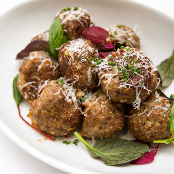 Preheat the oven to 450°F. In a large mixing bowl, combine all ingredients and mix until thoroughly incorporated. Shape the meatballs into golf-ball-sized portions (about 1½ ounces) and bake for 20 to 25 minutes, or until meatballs are no longer pink in the middle. Serve with pasta, rice, or other grain of choice, greens, in wraps or sandwiches, or dressed in favorite sauce of your choice.