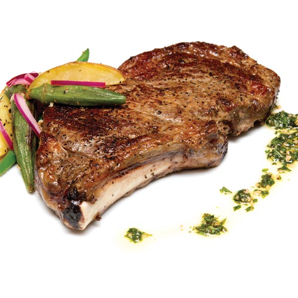 Cowboy Steak With Herb-Roasted Potatoes & Chimichurri
