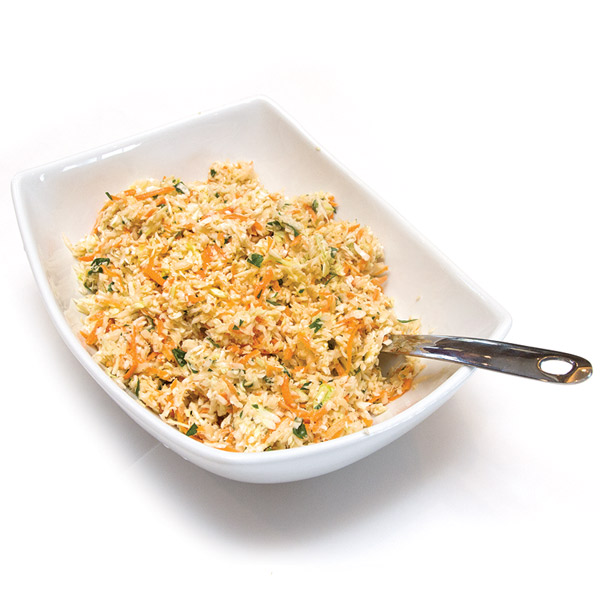 This go-to slaw goes well with everything. You can add diced bell peppers for a little more crunch, or jalapeños for a little spice.