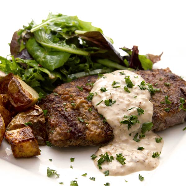 - 2 Certified Piedmontese cube steaks, cut in half to make 4 (6-ounce) steaks