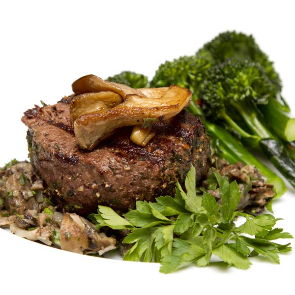 Certified Piedmontese filet mignon steaks provide all the flavor and tenderness of quality beef, without the saturated fat and calories of traditional breeds. This recipe pairs heart healthy Certified Piedmontese with mushrooms and broccolini for a flavorful combination of elegance and nutrition.