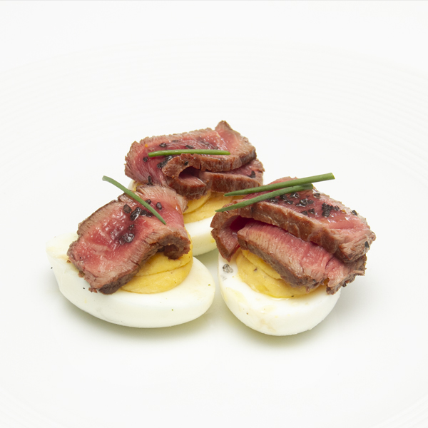 Horseradish Deviled Eggs With Seared Filet Mignon