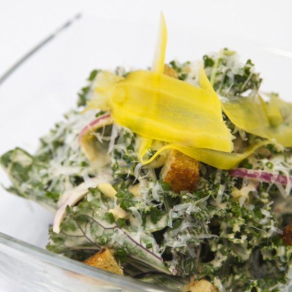 Kale brings its powerful health attributes to this take on the classic, and the homemade croutons and Caesar dressing are worth the effort and then some.