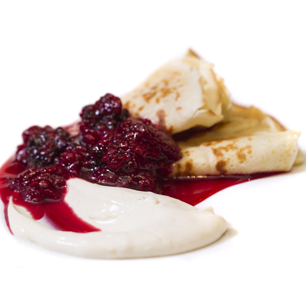 Macadamia Nut Crepes With Berry Reduction & Lemon-Infused Crème