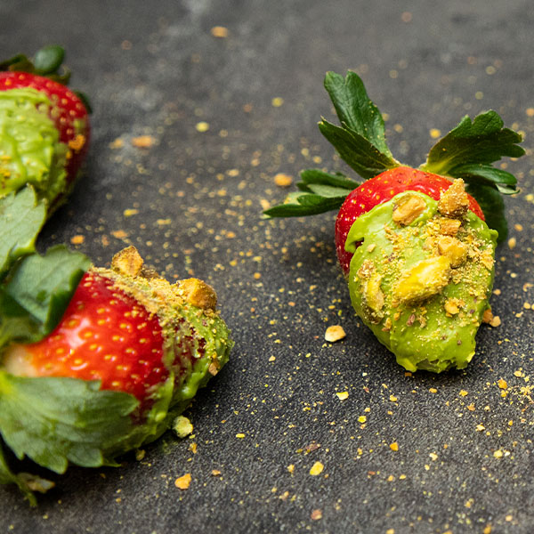 Matcha-Dipped Strawberries With Crushed Pistachios