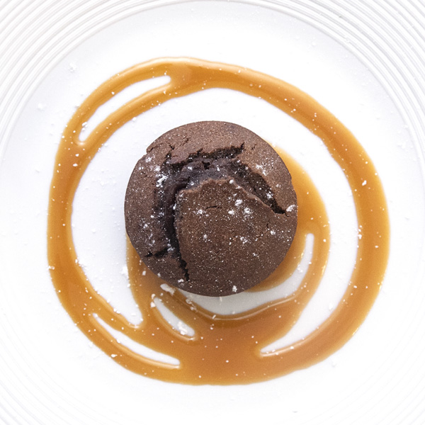 To a small pot, add the butter and semi-sweet chocolate and slowly heat until melted and smooth. Remove from heat and whisk in the powdered sugar until combined. Add the egg, egg yolk, and vanilla and mix until fully combined. Add the flour and espresso powder and mix until just combined, being careful to avoid overmixing the batter. Evenly divide the batter between the two prepared ramekins.