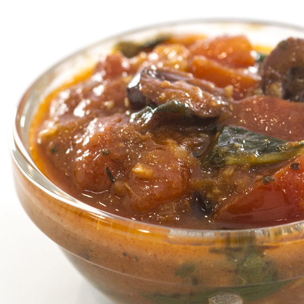 In a medium pot, heat olive oil, then add garlic and onions. Cook until translucent, then add the anchovies, capers, olives, tomatoes, basil, and tomato sauce and let simmer for 30 minutes. Season to taste.