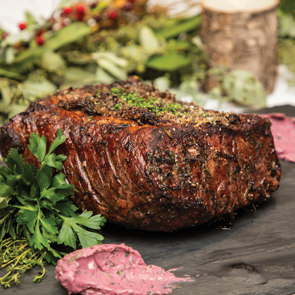 Slice the roast and garnish with a generous dollop of Red Wine, Shallot & Parsley Compound Butter (recipe follows).