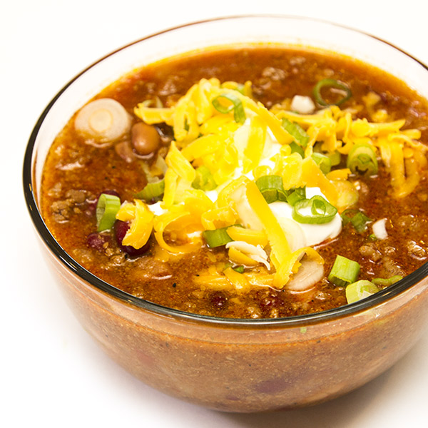 Serve topped with grated cheddar cheese, sour cream, and green onions.