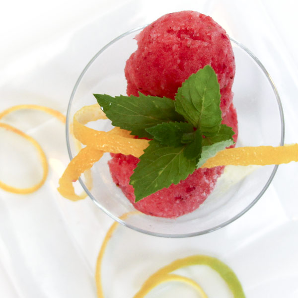 A sorbet is a delicious frozen concoction, generally made with pureed fruit and often containing wine or liqueur. Sweet and palate-cleansing, a sorbet can be made using an ice cream maker—but unlike ice cream, it contains neither air nor dairy products. A sorbet can be used between courses or as light dessert after a meal.