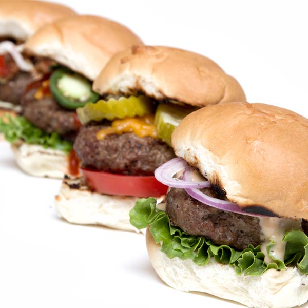 While the burgers are resting, slit the rolls and butter each inside. Place the butter side down and toast on the grill until golden brown, about 2 minutes. Place a slider into each roll and let guests add their toppings and spreads of choice.